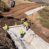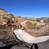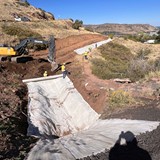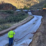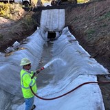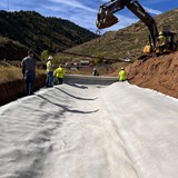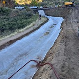 To address the erosion concerns, the RCR-7 reinforced concrete roll was selected for its effective erosion control properties and ease of installation. A temporary access road was carved on the uphill side of the stream, providing a staging area for the excavator. Using this access point, the excavator reformed the eroded stream bank and facilitated the precise installation of the RCR panels, each of which covered 65 feet of stream bank. County maintenance crews, despite having no prior experience with RCR, managed to complete the entire installation within a single day. Approximately 400 linear feet of the stream bank was armored, stabilizing the trail and stream bank without requiring extended closures or causing significant public disruption.