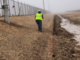 Armoring a failing 1,500 linear feet slope (1.5:1) at a chemical facility perimeter using RCR-12®. Challenges: installers inexperienced in using RCR® material, numerous pipe penetrations, and an existing chain-link fence within the work area.